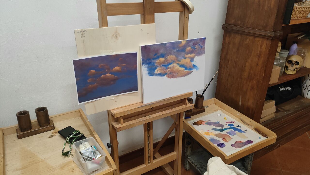 L'arte di rendere la consistenza soffice e tridimensionale di una nuvola è un'abilità che richiede attenzione ai dettagli. Trovare le giuste tonalità e temperature dei colori è un altro aspetto cruciale in questa pratica. Gli studenti si cimentano con determinazione in queste sfide, dando vita a opere che catturano l'essenza mutevole e affascinante del cielo.